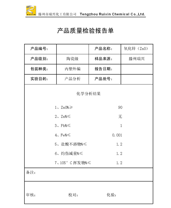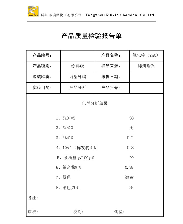 瑞興化工有限公司是生產(chǎn)氧化鋅的重點(diǎn)企業(yè),于2008年通過(guò)ISO9001:2008質(zhì)量管理體系認(rèn)證。“瑞興”牌氧化鋅在國(guó)內(nèi)擁有較大穩(wěn)定的市場(chǎng),并遠(yuǎn)銷(xiāo)東南亞、中東、中南美等國(guó)家和地區(qū),在國(guó)內(nèi)外享有較高聲譽(yù)。